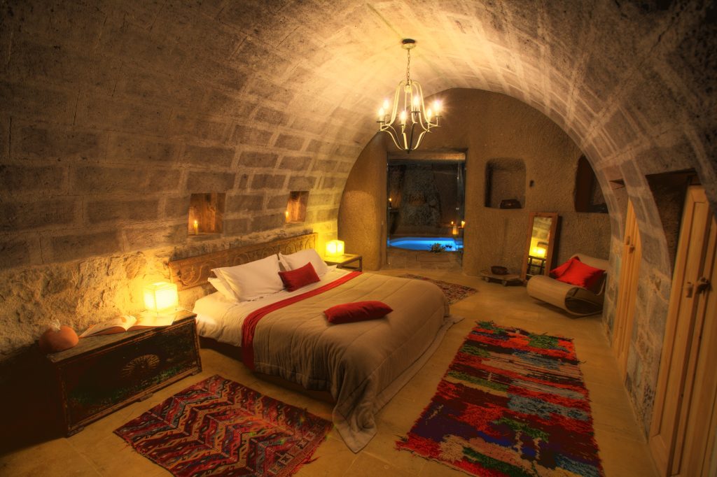 نعم، يمكن للزوار الاقامة في فنادق مصممة داخل الصخور الطبيعية في كابادوكيا لتجربة فريدة ومثيرة.